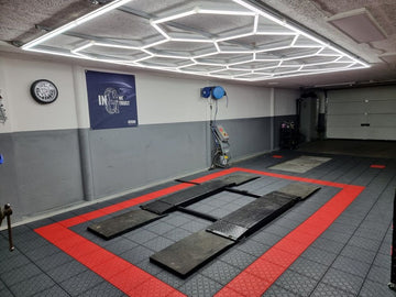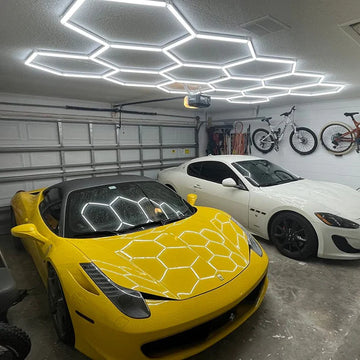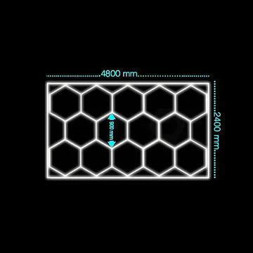 Lámpara hexagonal premium con sistema de 14 cuadrículas, 240 x 480 cm.